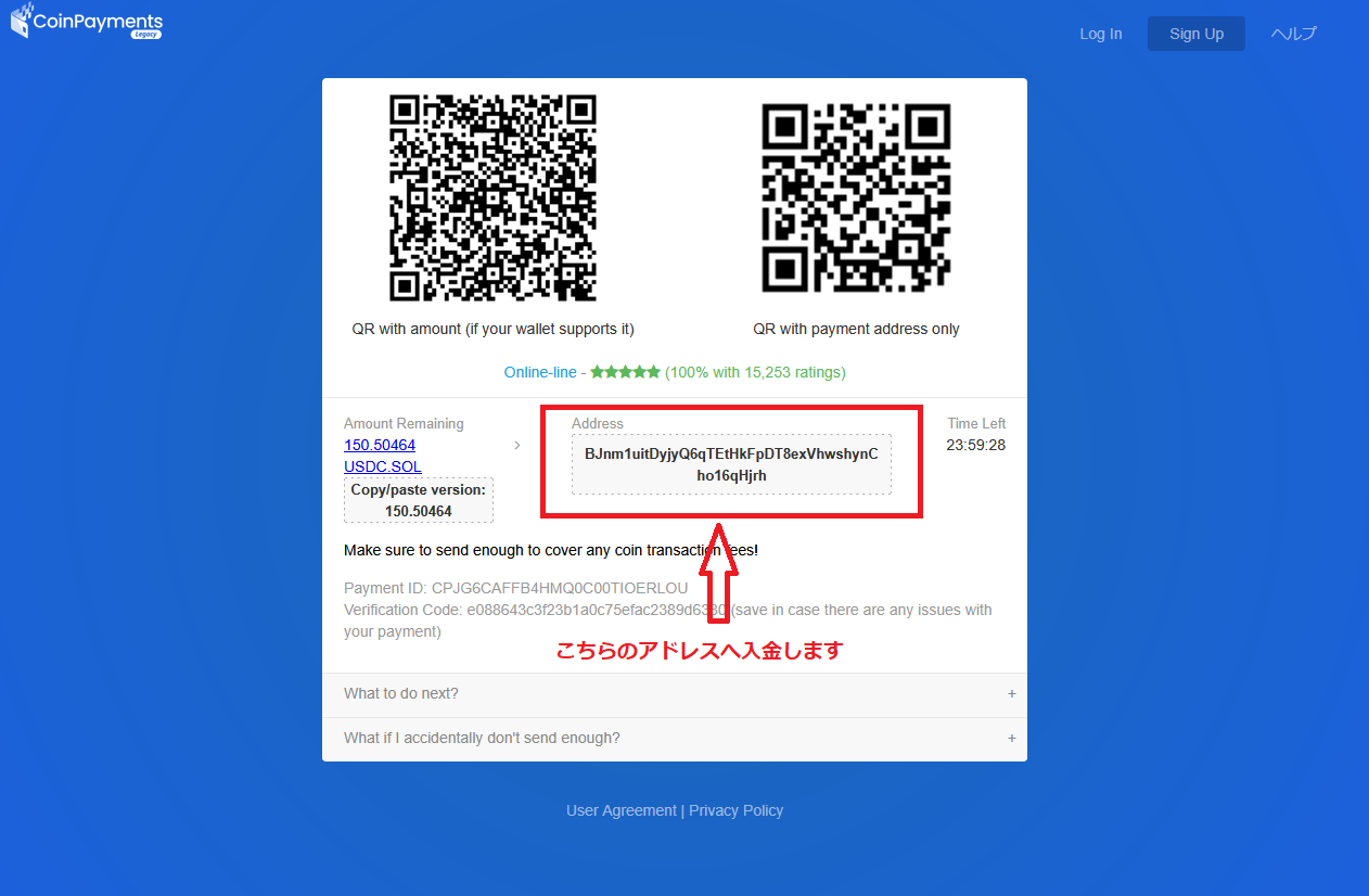 暗号資産での決済は、ビットコイン(BTC)やイーサリアム(ETH)は値動きが激しいので、決済をしても後からエラーで戻ることが多いので、USDCですることをおすすめしています☺